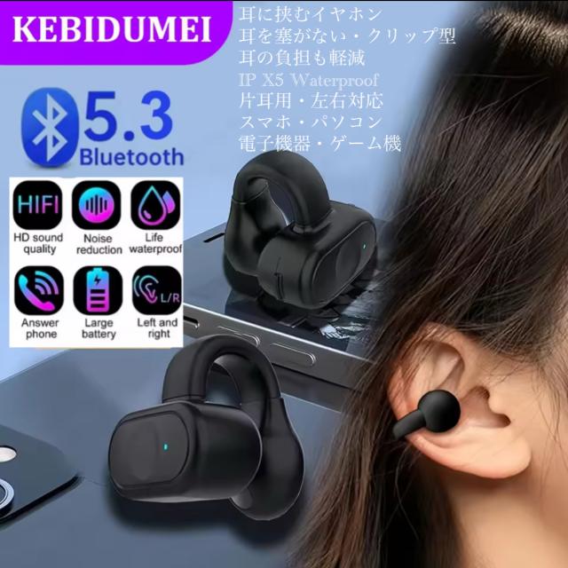 1 イヤホン ワイヤレスイヤホン Bluetooth5.3 IPX5 空気伝導イヤホン クリップ型 防水 耳掛け スピーカー マイク 片耳 USB 充電 超軽量 テレワーク