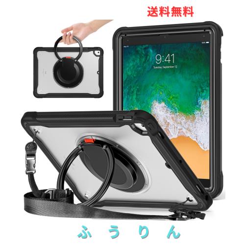 360°回転 iPad Air2 iPad6 iPad5 iPad Pro9.7 ケース 回転リング iPad 第5世代 6世代 9.7 インチ 背面カバー 肩掛け 半透明ケース 調節