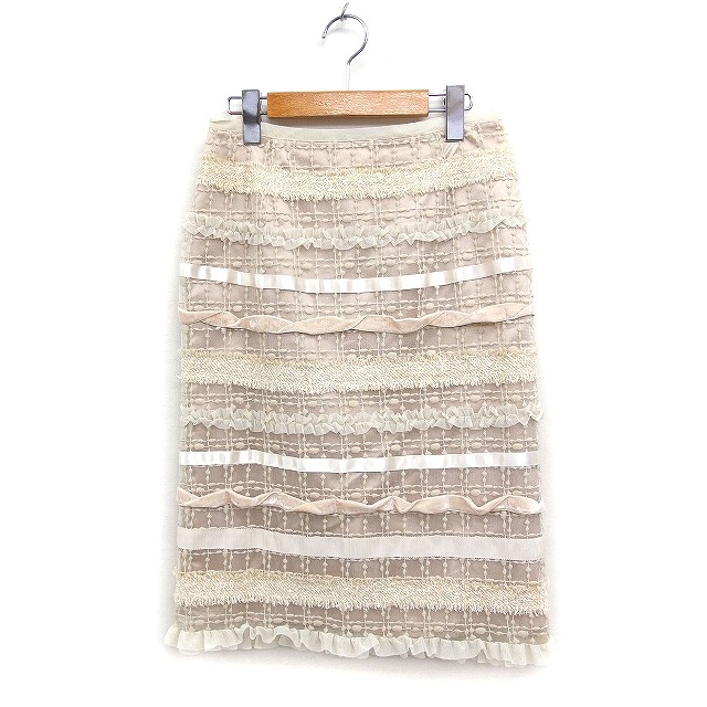【中古】トゥービーシック TO BE CHIC タイトスカート ミディ丈 スリット レース チュール ベルベット 40 ベージュ /FT