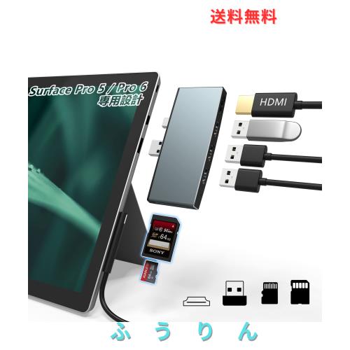 【最新型6 IN 2拡張USB3.0多機能・モバイルハブ】おしゃれなデザイン、Microsoft Surface Pro 5 / Pro 6と完璧に接続できます。USB3.0ポート×3、SDメモリーカード対応スロット×1、microSDカード対応スロット×1、4K HDMIポート×1(4K@30hz)。データ転送は最大5Gb/s、速くて安定した接続を提供します。