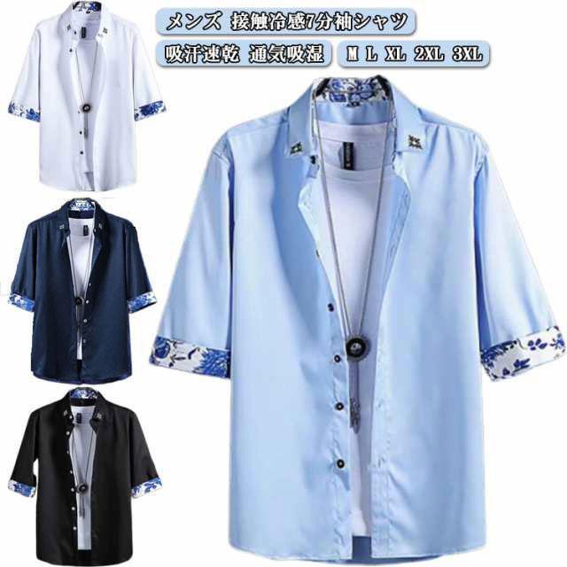 接触冷感7分袖シャツ メンズ 接触冷感 7分袖シャツ 半袖 メンズ ワイシャツ オーバーサイズシャツ メンズ 夏服 夏 服 吸汗速乾 通気吸湿 カジュ