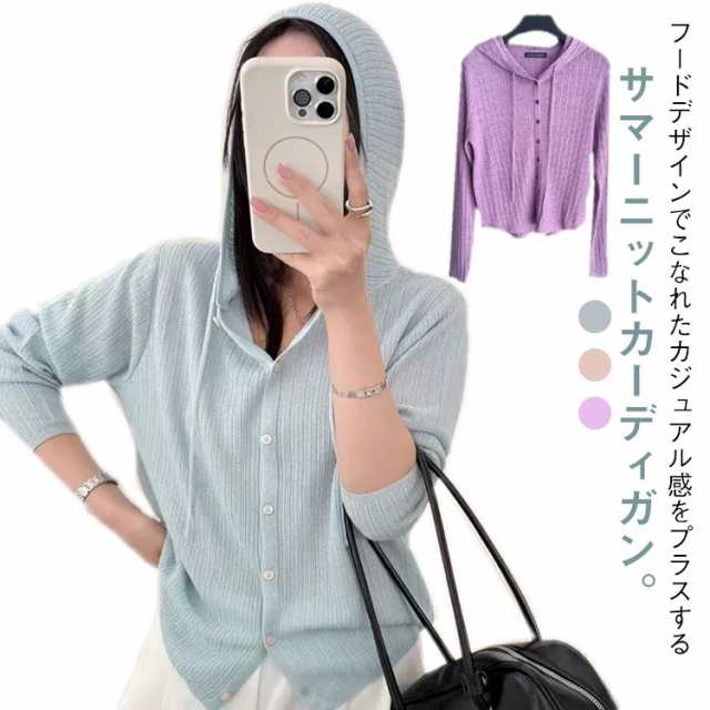 | ・フードデザインでこなれたカジュアル感をプラスするサマーニットカーディガン。 ・デイリーにもレジャーにも使えるサマーニットカーディガン ・ニット素材でしわになりにくく、日差しや冷房対策に持ち運びもしやすい。 ・絶妙ゆるシルエットで都会的なリラックス感◎ ・程良いシアー感でヘルシーな肌見せを叶え、暑い季節にもぴったりなアイテムです。 | |