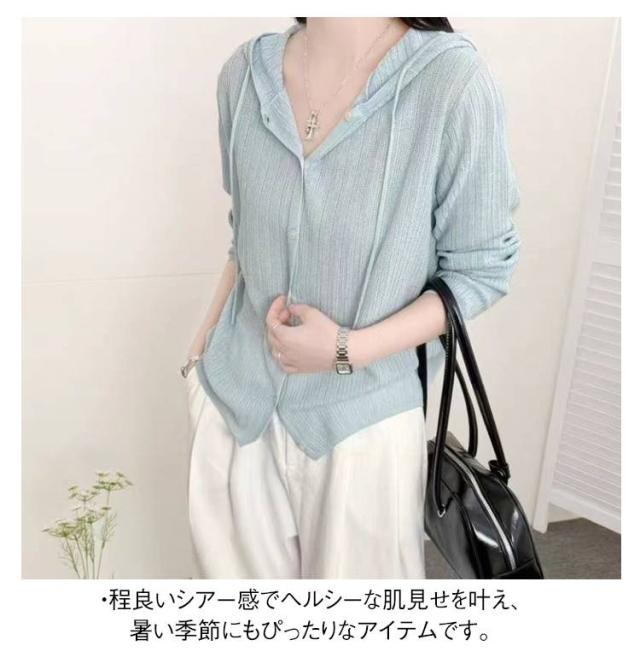 シアーカーディガン 薄手 UVカット 冷房対策 カーディガン UVカットパーカー 夏カーディガン 長袖 シアーカーディガン シースルー きれいめ サマーカーディガン レディース 透け感 UV対策 紫外線対策 ゆったり フード付き ボタン 羽織り 羽織もの オフィス 春 夏 春夏 夏用