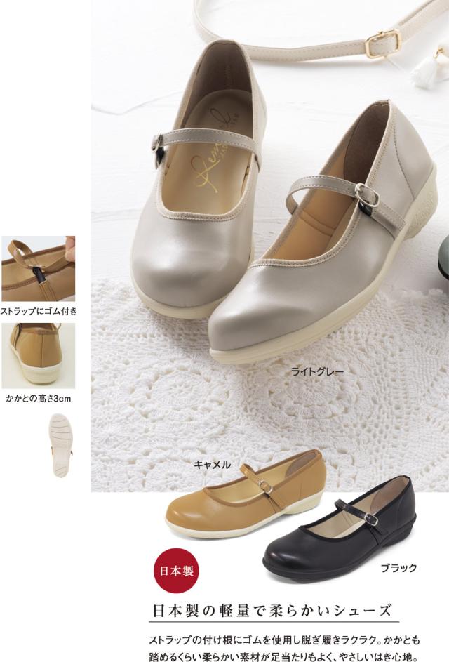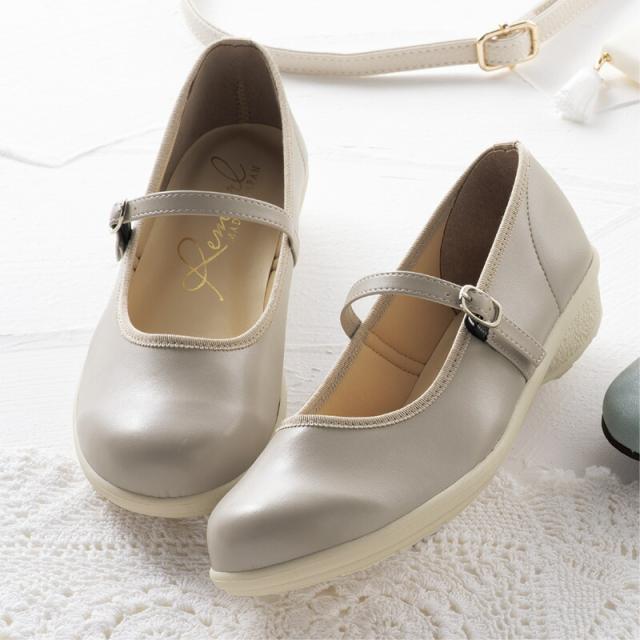 ゆったりゴムのストラップパンプス