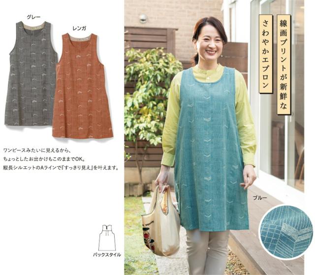 線画プリントワンピースエプロン