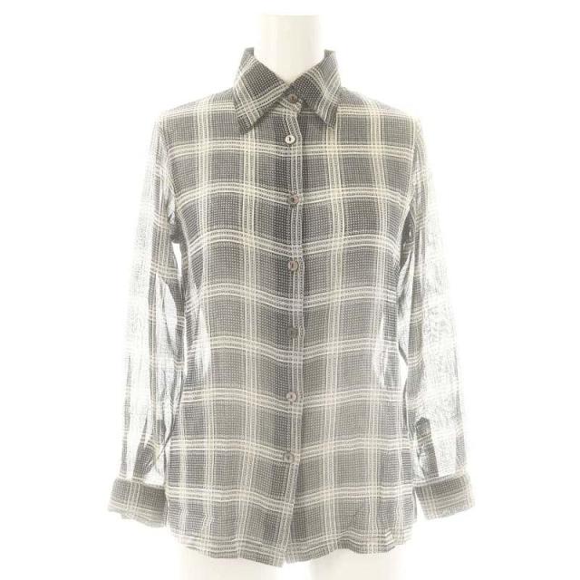【中古】ピエールバルマン PIERRE BALMAIN シアーシャツ ブラウス チェック ドット 黒 ベージュ レディース