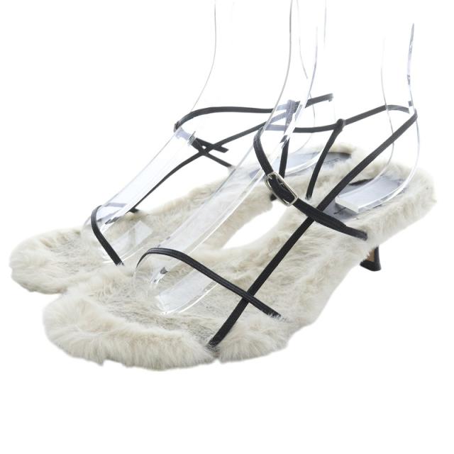 【中古】ブレンテッラ BRENTELLA ファーピンヒール サンダル ストラップ 38 白 ホワイト /SR13 レディース