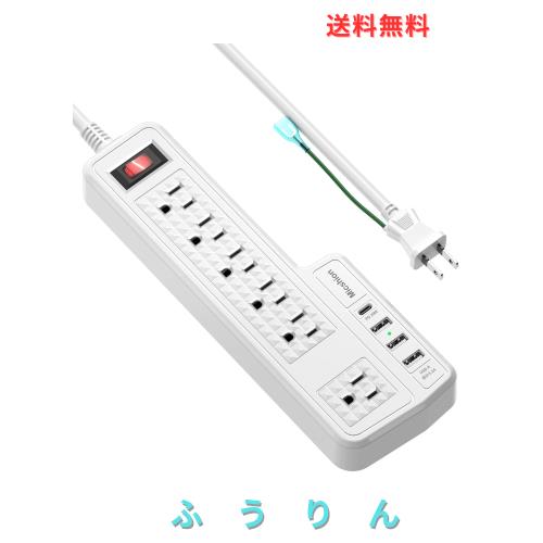 Micshion 電源タップ Type-C付き(PD機能) コンセント(2400W) 延長コード2m 6AC充電口 4USBポート 壁取付用固定フック 急速充電可能