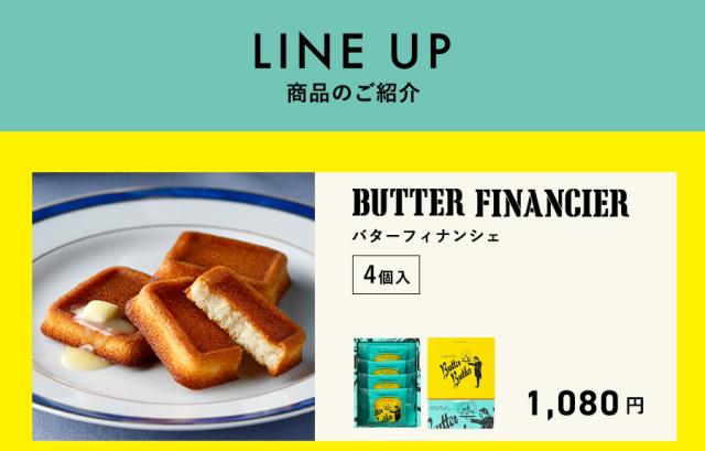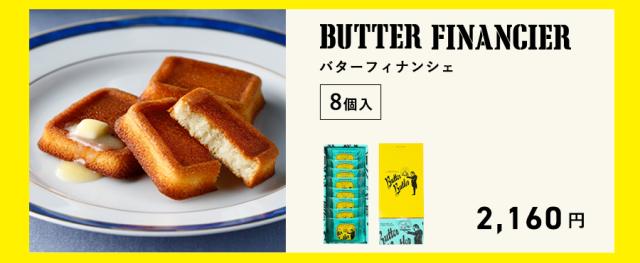 | 第1回「JR東日本お土産グランプリ」総合グランプリ受賞。こちら、ヨーロッパ産発酵バターとフランス産ゲランドの塩を使用したバターバトラー「バターフィナンシェ」でございます。 表面はカリッと焼き上げ、中はしっとりと仕上げた至福のフィナンシェ。こちら、お手土産やギフトに大変お薦めの品ではございますが…まずはご主人さま。是非ひと口、召し上がってみてはいかがですか。 |