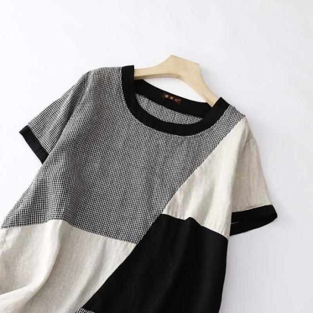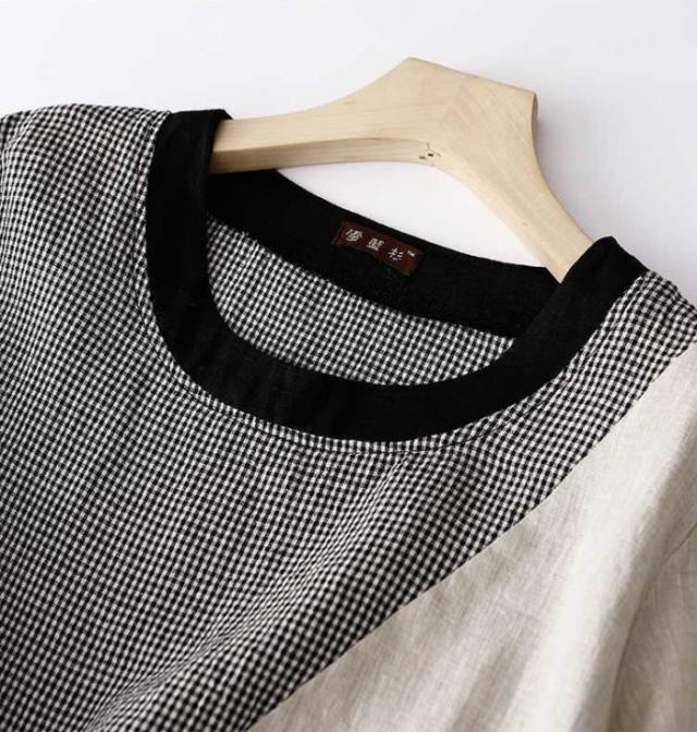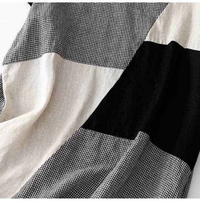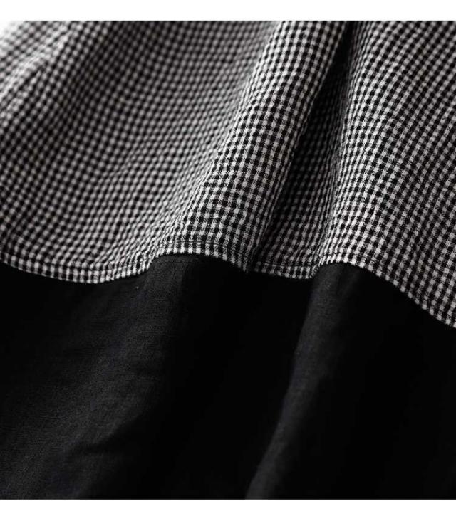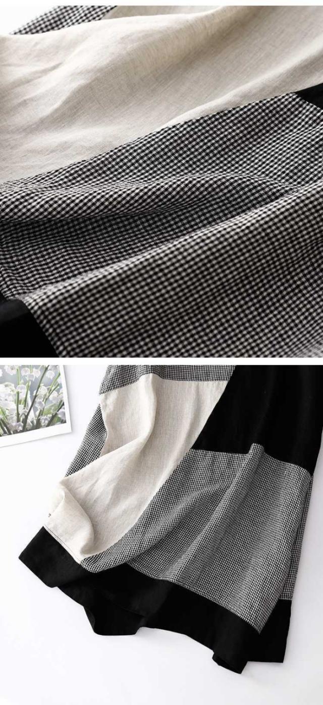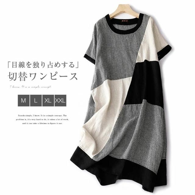 ワンピース 夏 綿麻風ワンピース レディース 切替ワンピース ギンガムチェック ロングワンピース ミモレ丈 ドッキング 大きいサイズ ゆったり 綿混 薄手 エレガント キレイめ 体型カバー 着痩せ 大人可愛い 着回しやすい
