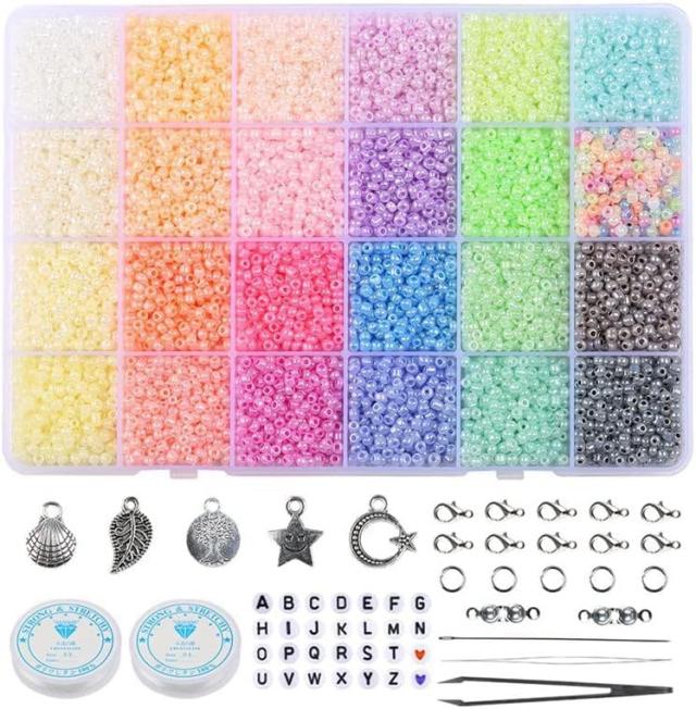 ビーズ手芸 24色 3mmガラスシードビーズ 小さなクラフトビーズ 小さなビーズキットラウンドシードビーズ アクセサリーキットDIY用品 手芸