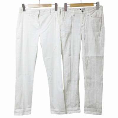 【中古】セオリー 小さいサイズ リネン 2本セット まとめ スラックス パンツ 無地 ストライプ 白 ホワイト 00 XS相当