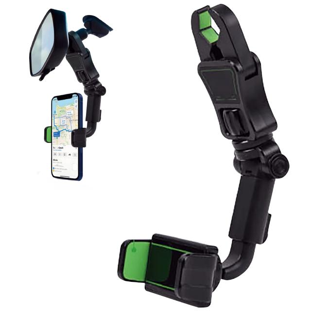 ◆商品名:フリースピン バックミラー取付 スマホ アーム ホルダー 車載ホルダー スマホホルダー 片手操作 360度回転 後部座席 ルームミラー スマホ