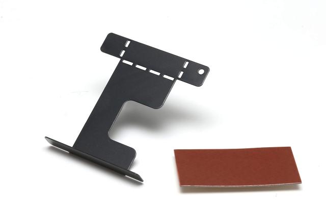 適合するレーダー探知機の受光部等を妨げない形状になっております。設置角度はブラケット先端を折り曲げ、調整を行います。