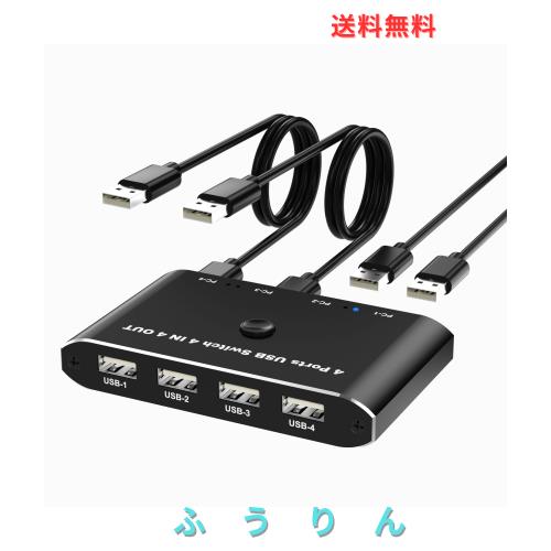 USB 切替器 4入力4出力 USB 切り替え器PC4台用 1台のプリンターを4台のパソコンで使用 パソコン 4台 キーボード 1台 マウス キーボード