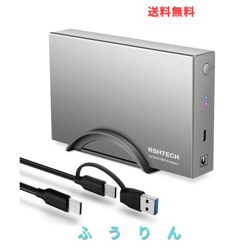 HDDケース 3.5インチ RSHTECH ハードディスクケースUASP対応 6Gbps高速転送速度 最大22TB 12V電源アダプター付属 アルミ製 SATA III対応
