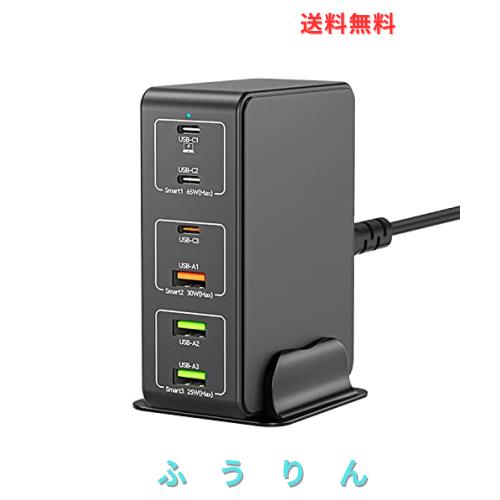 USB 充電器 type-c 合計120W PD 急速充電器 6ポート【PD 3.0、PPS、QC4+対応/単ポート65W/6台同時充電/1.2Mケーブル&スタンド付】USB-C