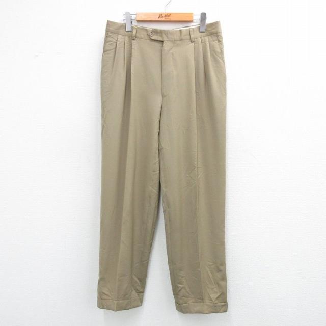 古着 パンツ メンズ 90年代 90s ウール 濃ベージュ カーキ W32 中古 ボトムス ロング 中古 古着