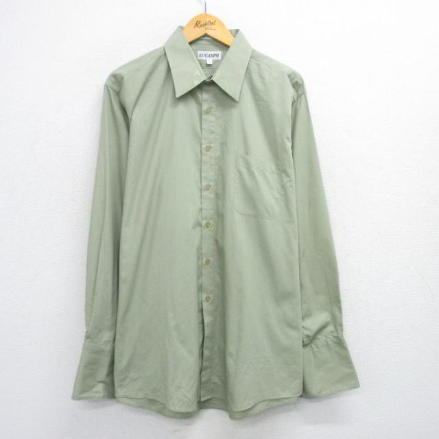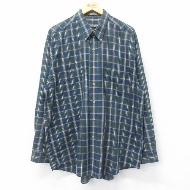 古着 長袖 シャツ メンズ 大きいサイズ 緑 グリーン XLサイズ 中古 トップス 中古 古着