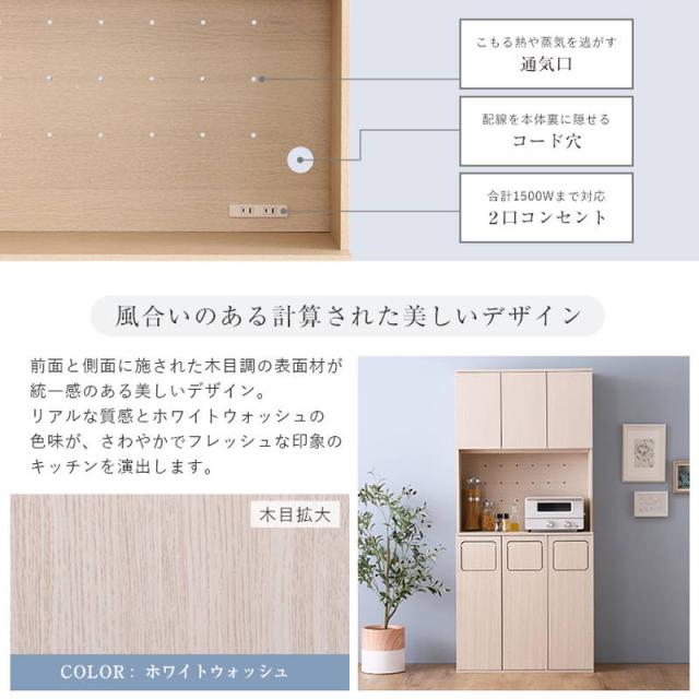 食器棚 ゴミ箱一体型 キッチンラック 幅80cm 北欧調 45Lゴミ箱 3分別 レンジ台 カップボード