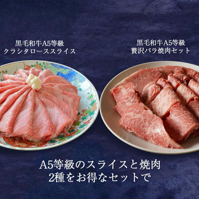 | 内容量 | 最高級 黒毛和牛 A5等級 霜降り クラシタロース スライス 500g×1 黒毛和牛A5等級贅沢バラ焼肉 500g×1 |
