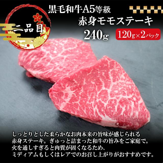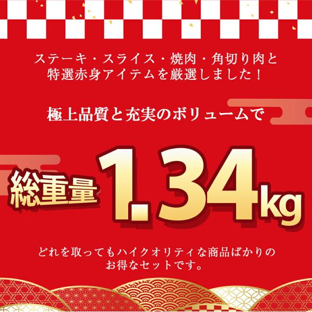 | 内容量 | 黒毛和牛A4等級以上特選ももあっさりスライス300g×2 黒毛和牛A5等級赤身モモステーキ120g×2 黒毛和牛A4等級以上 煮込み用 赤身 角切り肉300g×1 黒毛和牛A5等級赤身焼肉200g×1 |