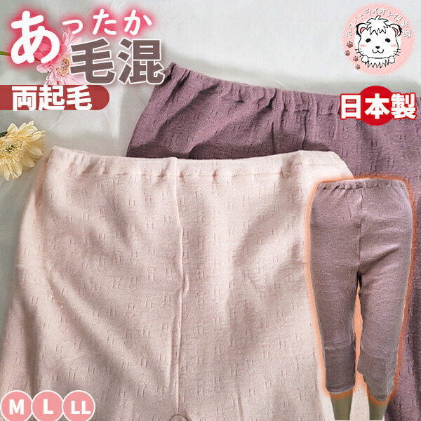 【アウトレット】腰 膝 当布たっぷり 2重構造 両起毛 あったか毛混 7分丈ボトム 厚地 防寒 保温 日本製 L | あったか インナー レディース スパッツ レギンス