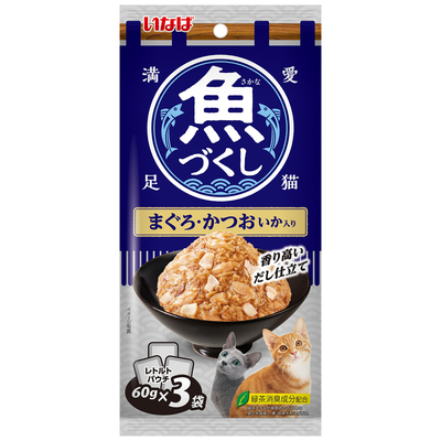 【12個セット】いなばペットフード 魚づくしまぐろ・かつおいか入り60g×3袋