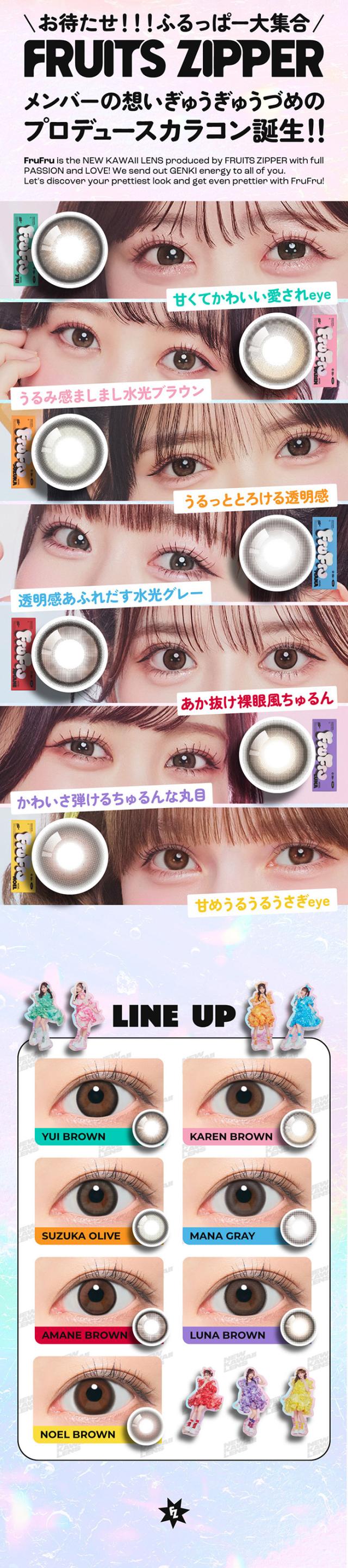 | DIA | 14.2mm:カレンブラウン/スズカオリーブ/マナグレー/アマネブラウン 14.5mm:ユイブラウン/ルナブラウン/ノエルブラウン |