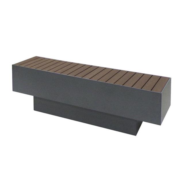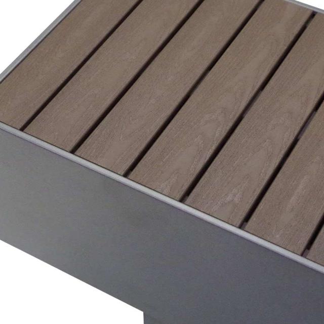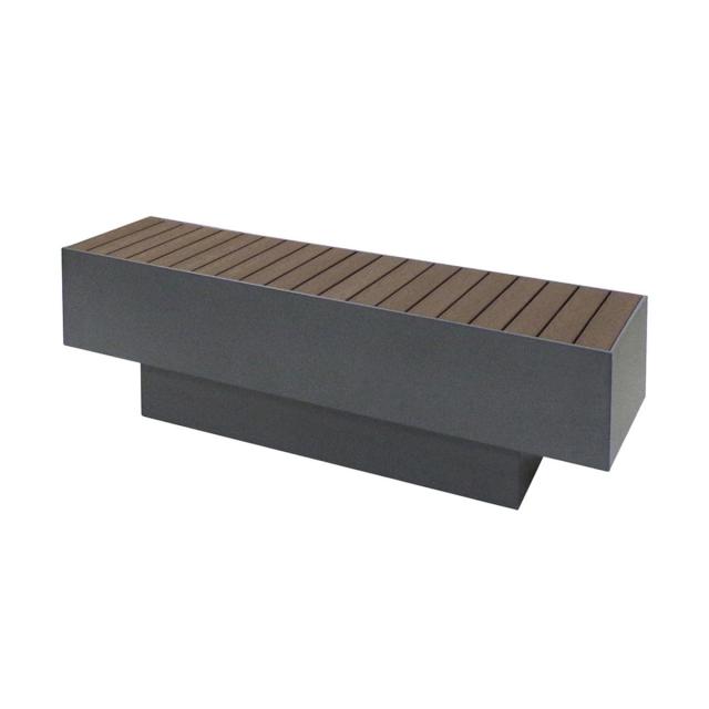 座板は木目調で温かみのある見た目です。再生樹脂を使用しているので、耐久性があり屋外に設置しても劣化しにくいです。