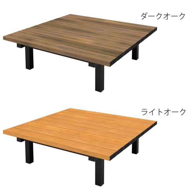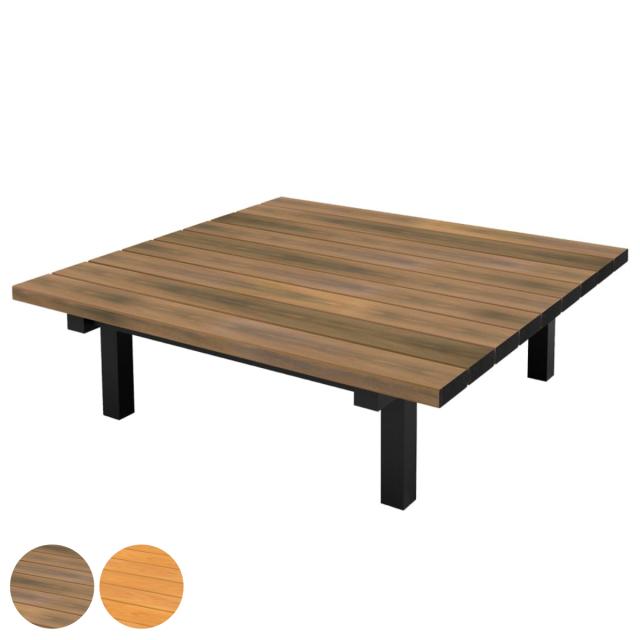 座板は木目調で温かみのある見た目です。再生樹脂を使用しているので、耐久性があり屋外に設置しても劣化しにくいです。
