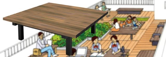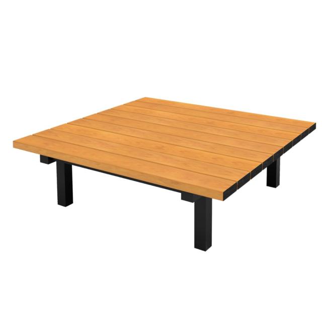 ゆったり座れる再生樹脂製の正方形ベンチ