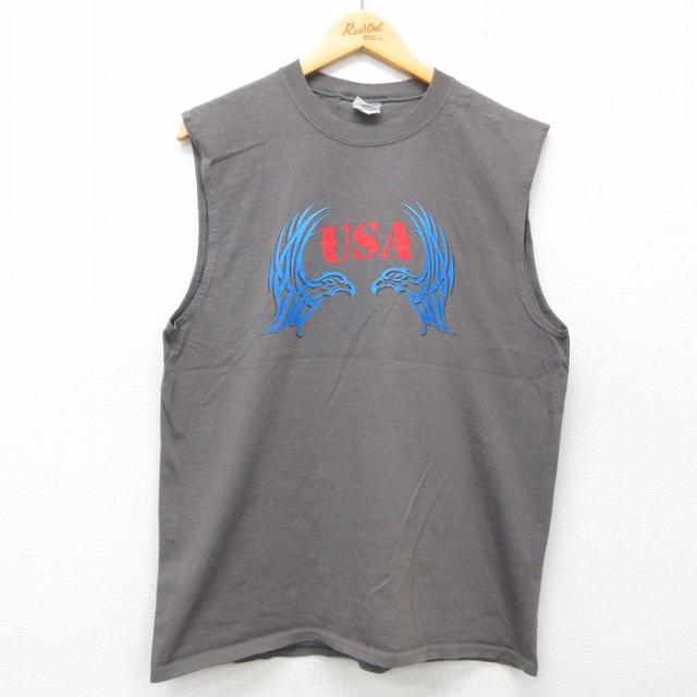 【商品名】 L★古着 ノースリーブ ビンテージ Tシャツ メンズ 00年代 00s Broncos クルーネック グレー 霜降り他