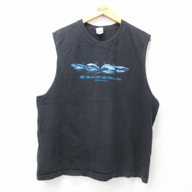 古着 ノースリーブ ビンテージ Tシャツ メンズ 00年代 00s CHRISTIAN コットン クルーネック 黒 ブラック XLサイズ 中古 中古 古着
