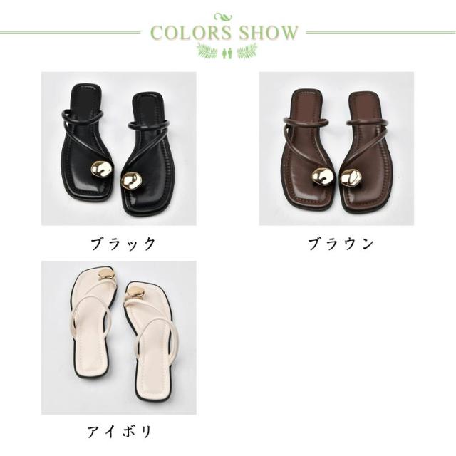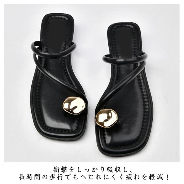 送料無料 トングサンダル リングサンダル サムサンダル レディース ビーチサンダル フラットサンダル つっかけ かかとなし ぺたんこ ローヒール すべりにくい 痛くない スクエアトゥ ゴールド 金具 親指トング きれいめ