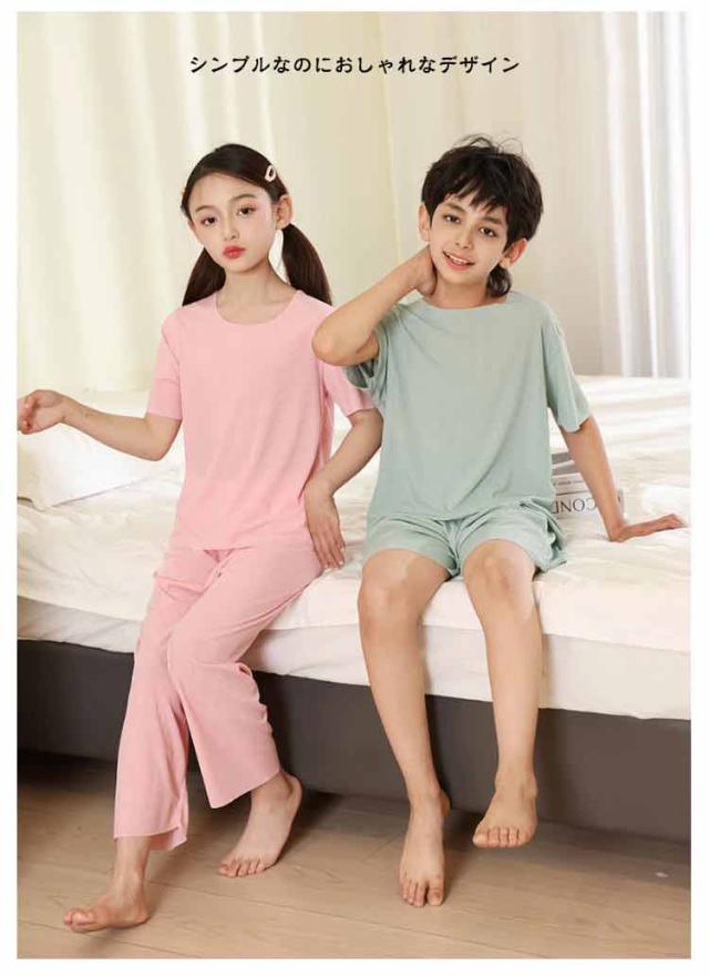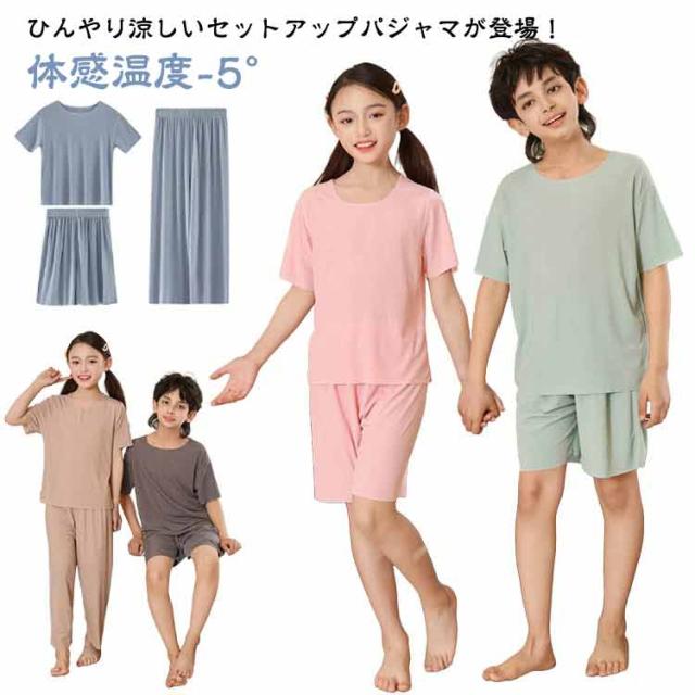 キッズ パジャマ 半袖 冷感 パジャマ 子供 半袖 長ズボン 涼しい 夏 薄手 男の子 ルームウェア 無地 半ズボン ジュニア お昼寝 女の子 上下セット セットアップ お揃い ひんやり シンプル 半袖Tシャツ 長ズボン 短パン 100 110 120 130 140 150 160 170 送料無料