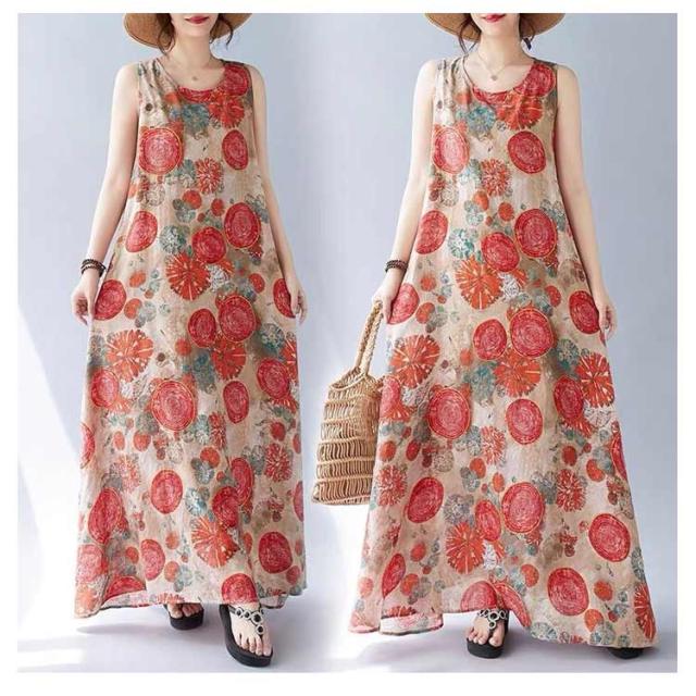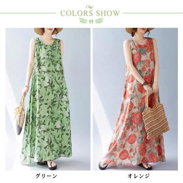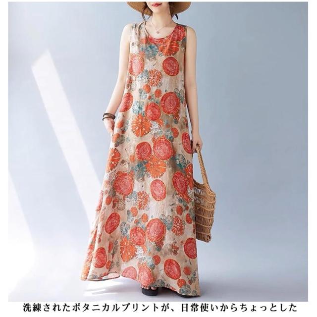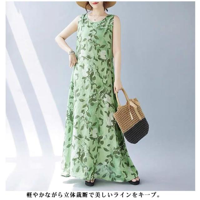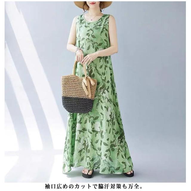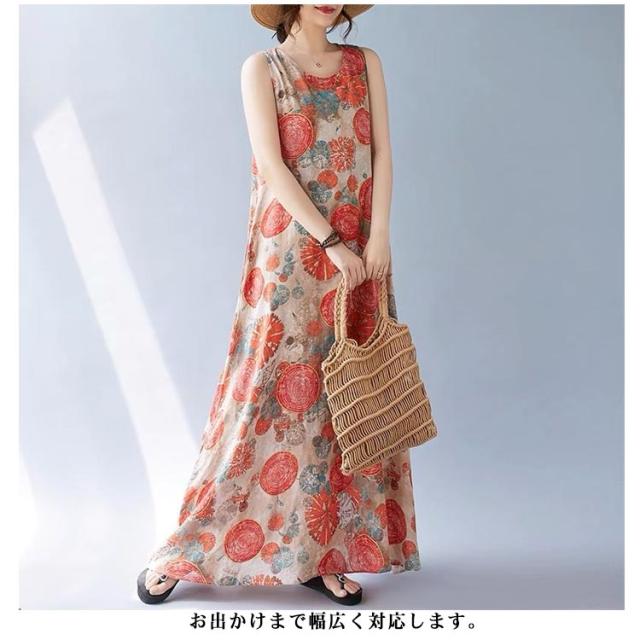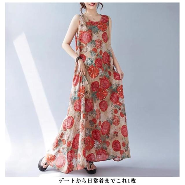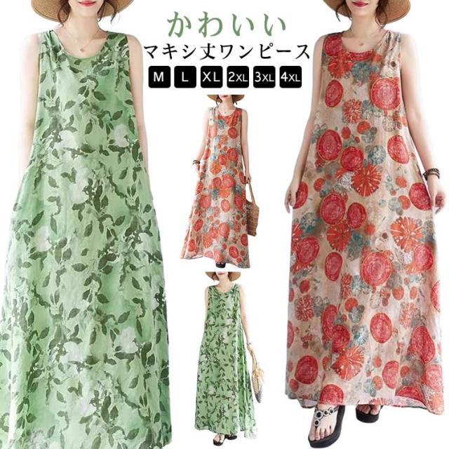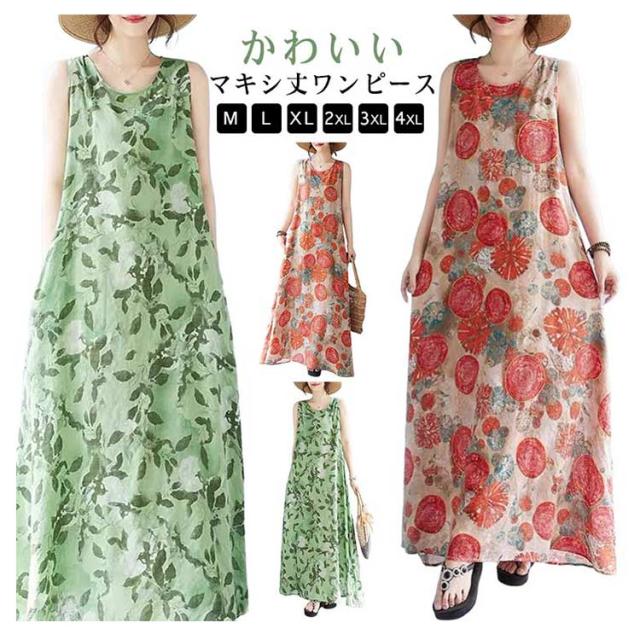 ワンピース レディース 夏 ロングワンピース きれいめ 花柄 ノースリーブ 春 着痩せ プリント 体型カバー 大きいサイズ ゆったり 体型カバー ロングワンピース マキシ丈 ロング丈 涼しい 低身長 カジュアル オシャレ 送料無料