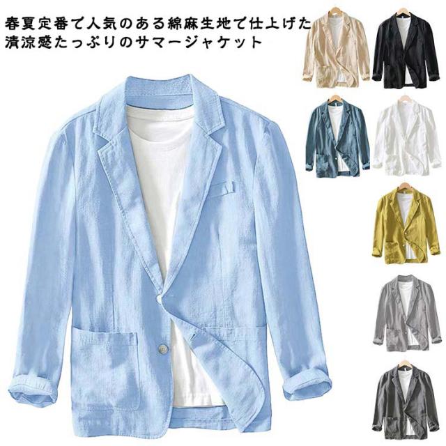 メンズ リネンジャケット 春夏 ライトアウター テーラードジャケット 綿麻 サマージャケット サマージャケット 薄手 麻混 無地 リネンジャケット 長袖 アウトドア 紫外線対策 カジュアル ビジネス 紳士服 春 夏 大きいサイズ 大きいサイズ 送料無料 父の日 プレゼント ギフト