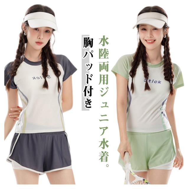 ジュニア 水着 上下セット ラッシュガード 女の子 キッズ セパレート 水着 スポーティー 水陸両用 水泳 フィットネス スイムウェア 海水浴 プール 海 テニス バトミントン 子供 着痩せ 体型カバー 送料無料