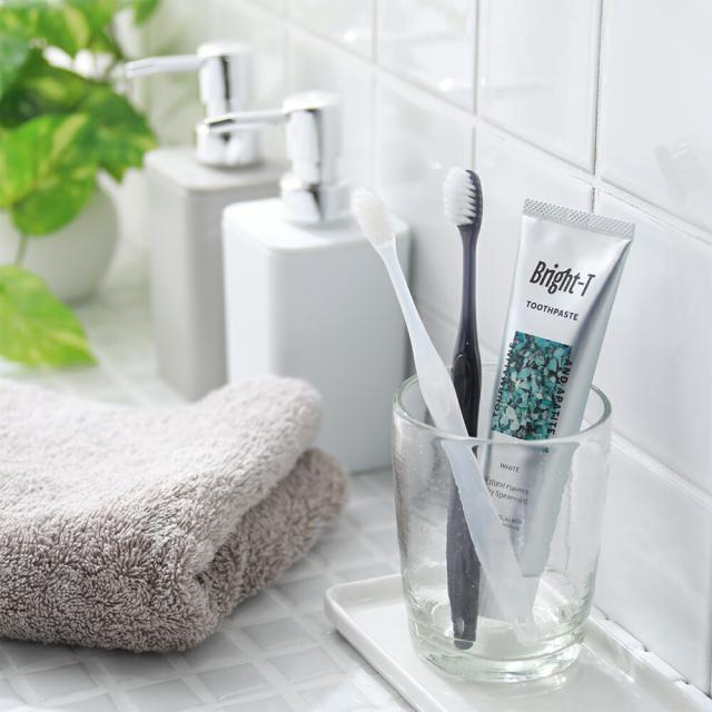 歯ブラシに適量をとって、優しく泡立てるようにご使用ください。専用の「ブライトティー 歯ブラシ」をお使いになることをおすすめします。