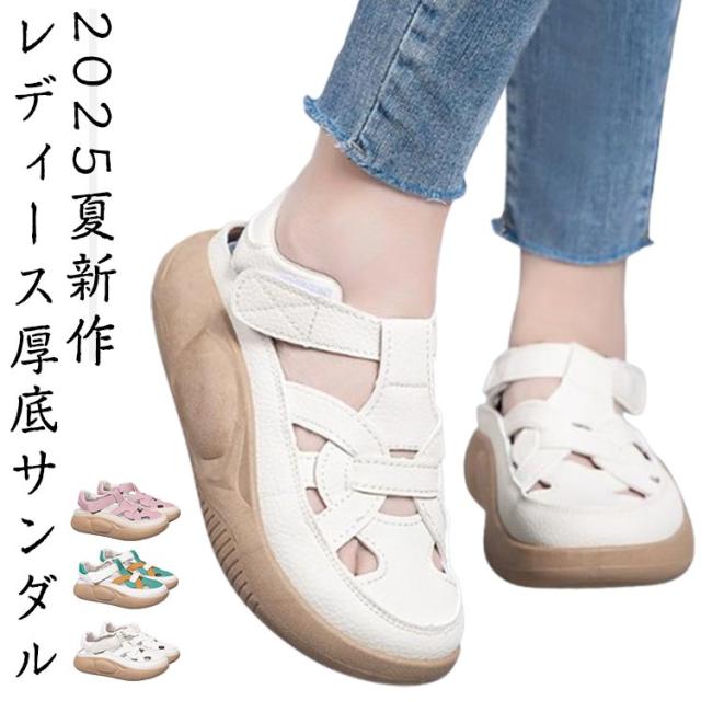厚底 サンダル レディース 夏用 マジックテープ スポーツサンダル スニーカー風サンダル 軽量 歩きやすい スポサン カジュアルシューズ メッシュ 蒸れない 通気性 疲れない サンダル デイリー アウトドア 旅行