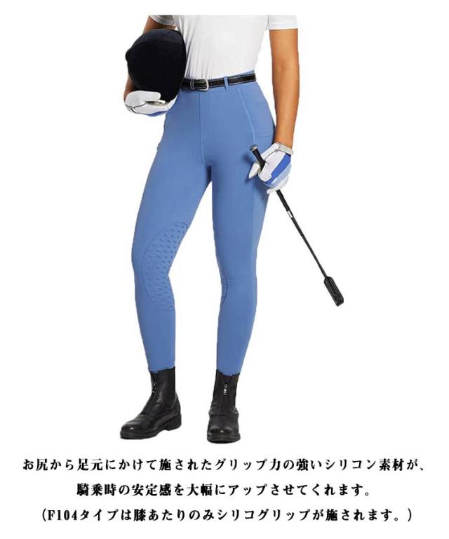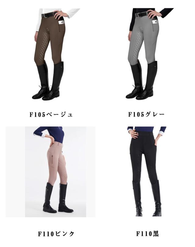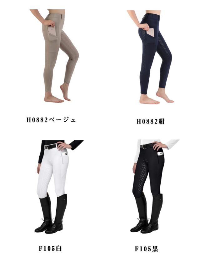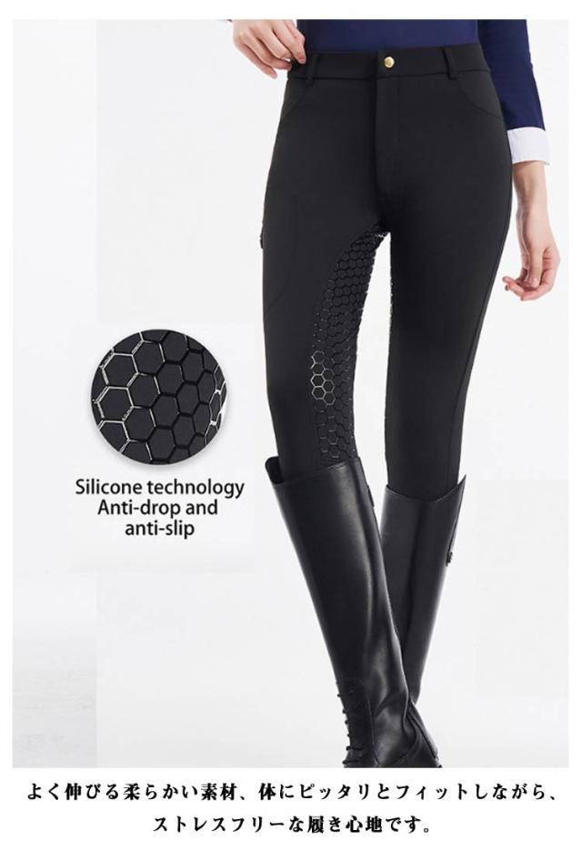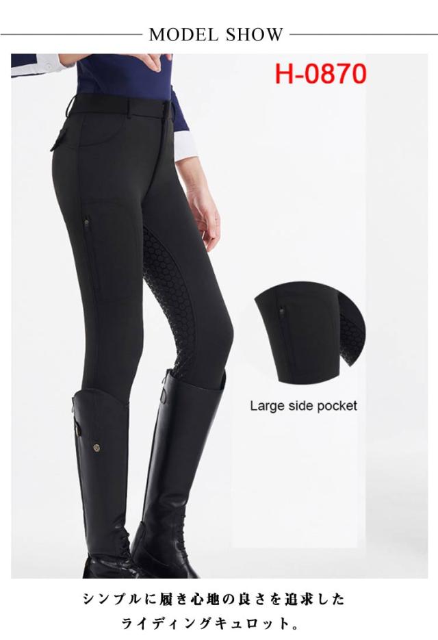 | 薄くて通気性よく、着心地抜群♪ シンプルに履き心地の良さを追求したライディングキュロット。 お尻から足元にかけて施されたグリップ力の強いシリコン素材が、騎乗時の安定感を大幅にアップさせてくれます。(F104タイプは膝あたりのみシリコグリップが施されます。) よく伸びる柔らかい素材、体にピッタリとフィットしながら、ストレスフリーな履き心地です。 サイドにはスマホを入れる便利ポケット付き仕様です。 ソフトな肌ざわりや通気性の良さも◎これからの季節に大活躍する間違いなしの乗馬パンツです。 | |