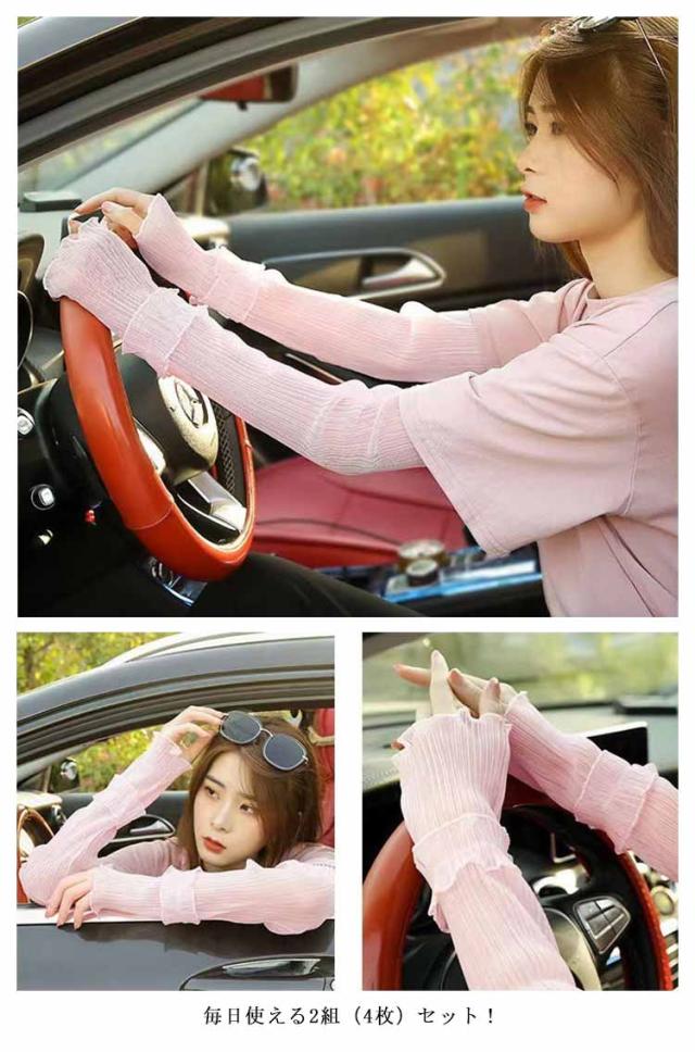 レディース 運転用 アームスリーブ 冷感 アームカバー UVカット 腕カバー 軽量 レース アームカバー 春夏 涼感 通気性 お洒落 日焼け対策 フリーサイズ レース 袖カバー 透け感 カジュアル アイスシルクアームカバー 2組セット