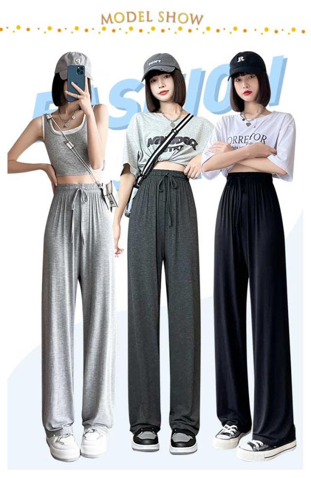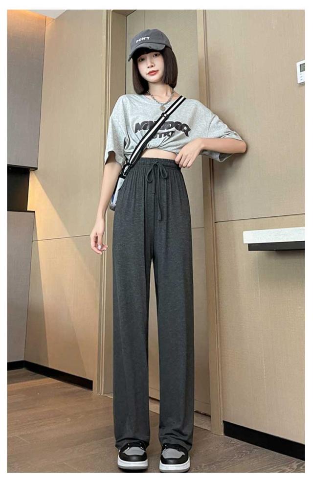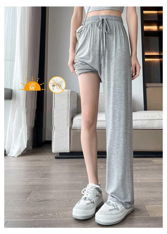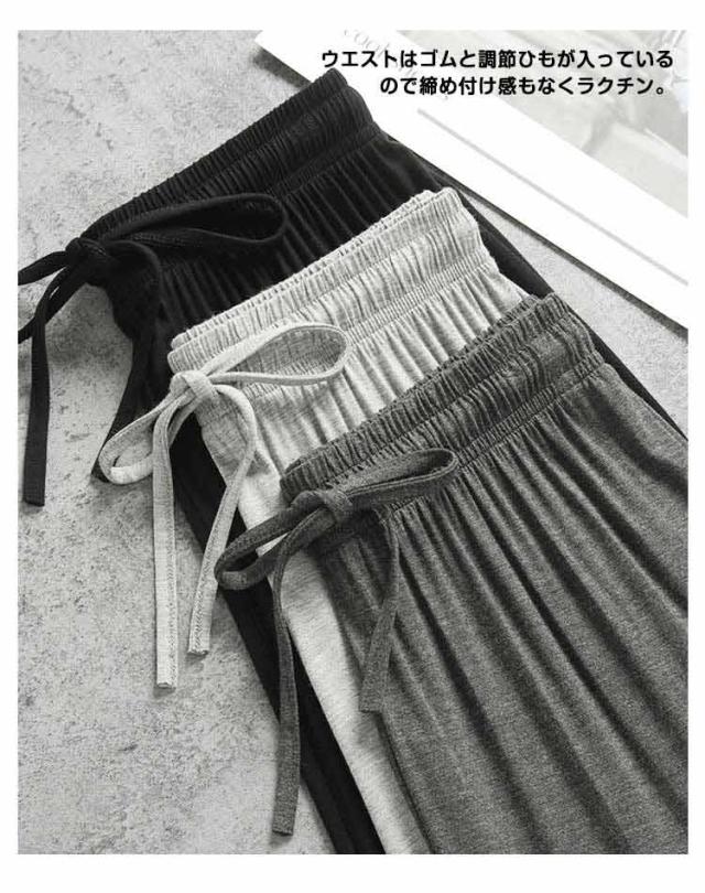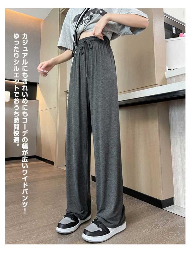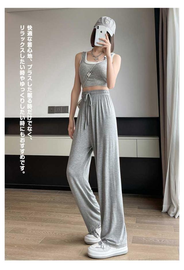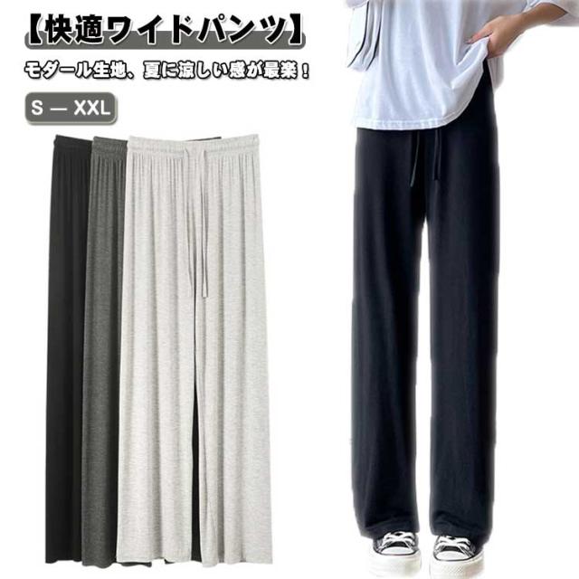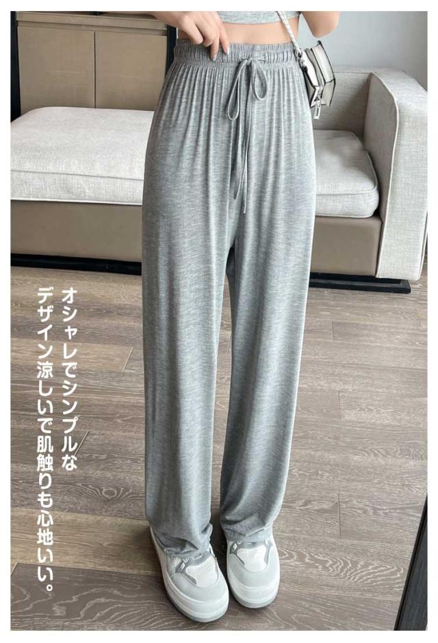 レディース モダール生地 ルームウェア 女性 ワイドパンツ ウエストゴム ワイドパンツ 夏 部屋着 無地 薄手 パンツ ルームパンツ ひも付き ロングパンツ ストレート ハイウエスト シンプル カジュアル 日除け 虫よけ パンツ