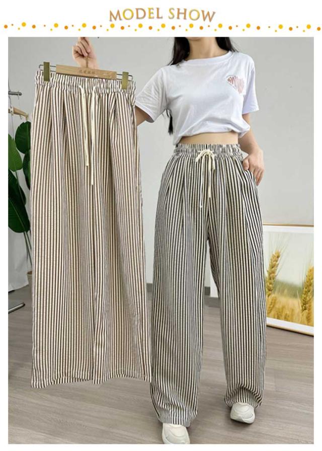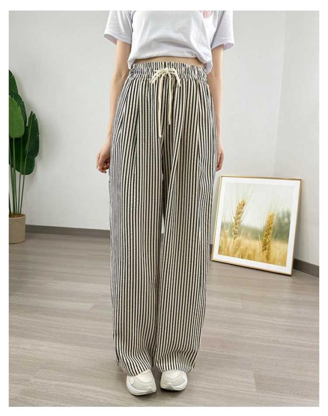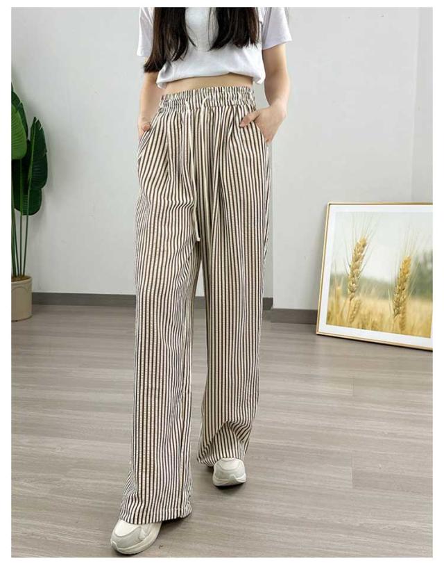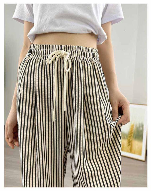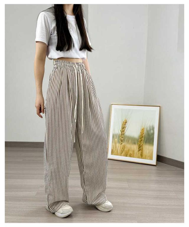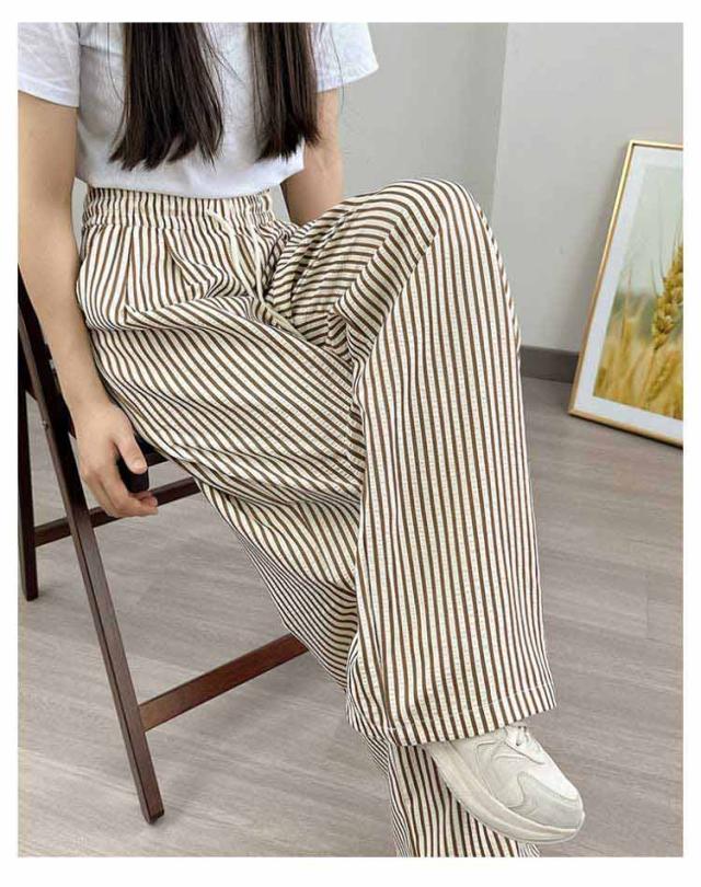 30代 ストレート 夏 ワイドパンツ ハイウエスト カジュアル レディース ストライプ柄 ウエストゴム ひも付き ワイド シンプル おしゃれ ゆったり 涼しい 快適 イージーパンツ 20代 ワイドパンツ 40代 50代
