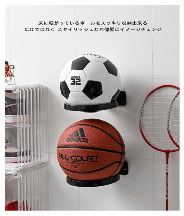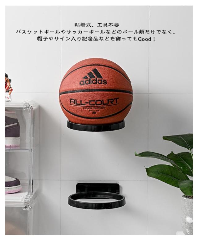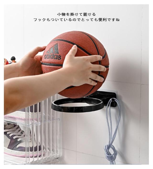 | 壁に浮いているみたいにディスプレイ収納できるボール用ホルダーです。 床に転がっているボールをスッキリ収納出来るだけではなく スタイリッシュなお部屋にイメージチェンジ♪ 】 粘着式、工具不要 バスケットボールやサッカーボールなどのボール類だけでなく、帽子やサイン入り記念品などを飾ってもGood! 小物を掛けて置けるフックもついているのでとっても便利ですね★ | |