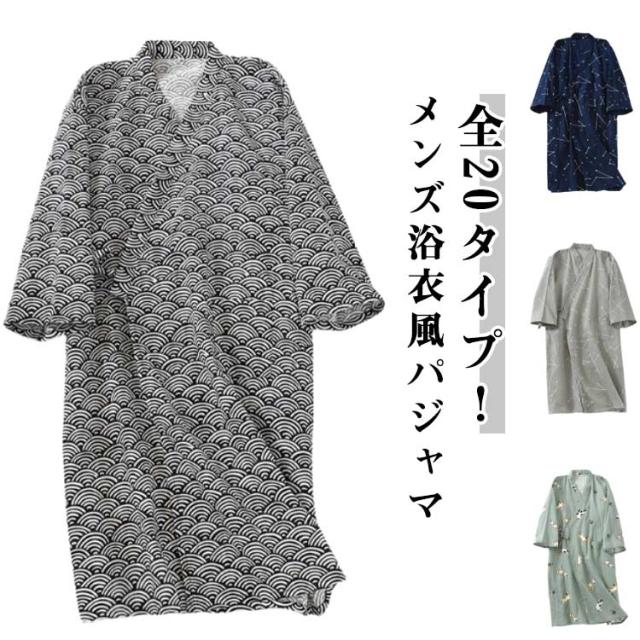 | 全20タイプ!メンズ浴衣風パジャマ 前開き、着け脱ぐにも簡単!ゆっとりしたガウンタイプで、窮屈感がなく快適に着用します。 綿素材を使い、肌に優しい。お風呂上りや寝苦しい夜も快適です。 全開のフルオープン式なので着脱が簡単で介護や入院中も安心デザインです。 普段の寝巻き、ルームウェアとして、旅行等のお泊り用も役に立ちます。部屋、旅館、ホテル、入院、病院、介護に適用されます。 | |