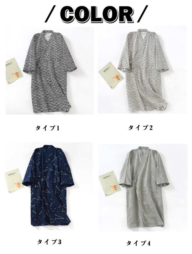 部屋着 メンズ 男 ナイトガウン バスローブ 男性 ねまき 綿 パジャマ 介護 寝間着 浴衣 和風 前開き ナチュラル お風呂 春夏秋 旅館 温泉 浴衣 紳士用 無地 総柄 バスローブ 夏祭り 花火大会 コットン ナイトウェア 部屋着