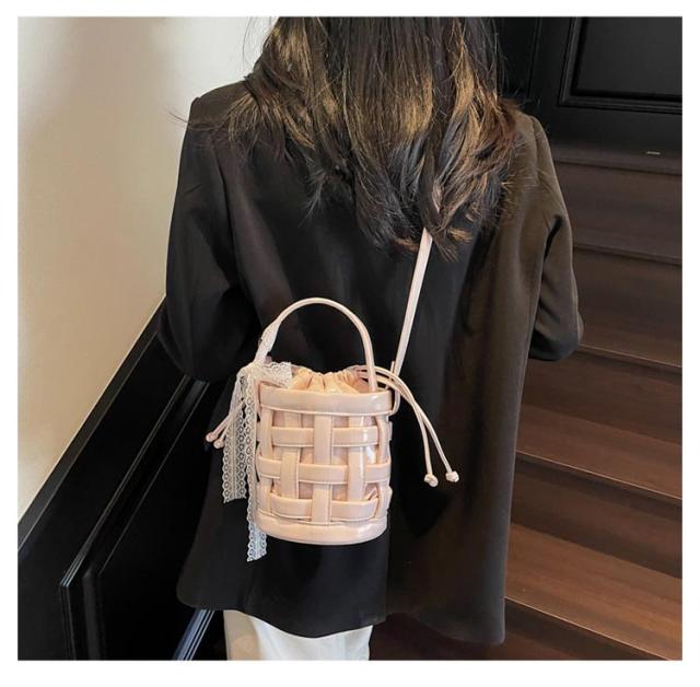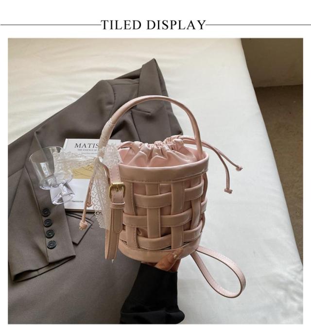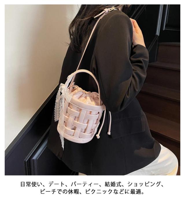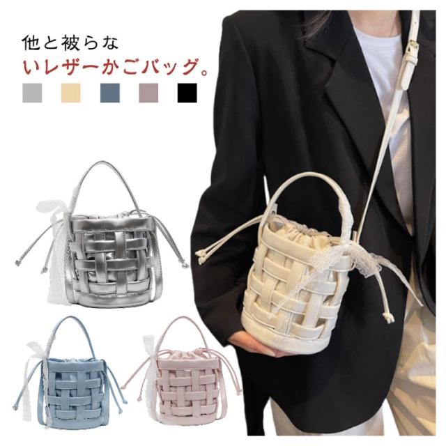 バケツバッグ かごバッグ 巾着バッグ 編み込み 籠バッグ ショルダー ショルダーバッグ 自立 可愛い スマホポーチ ショルダーバッグ スマホショルダーバッグ レザー レディース バケットバッグ