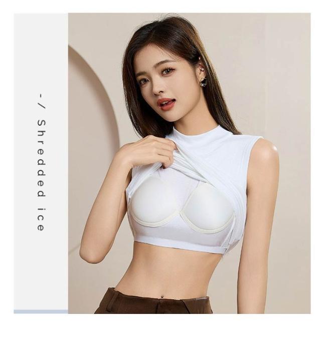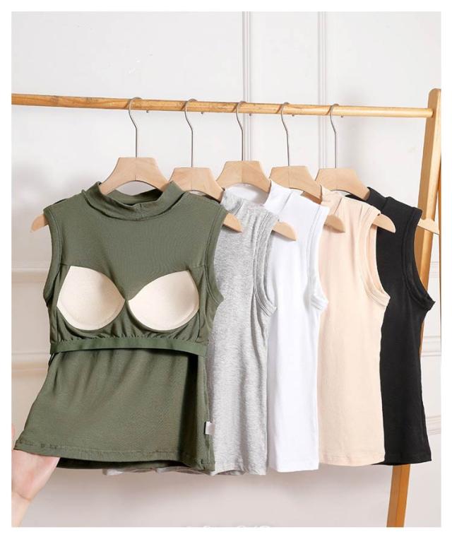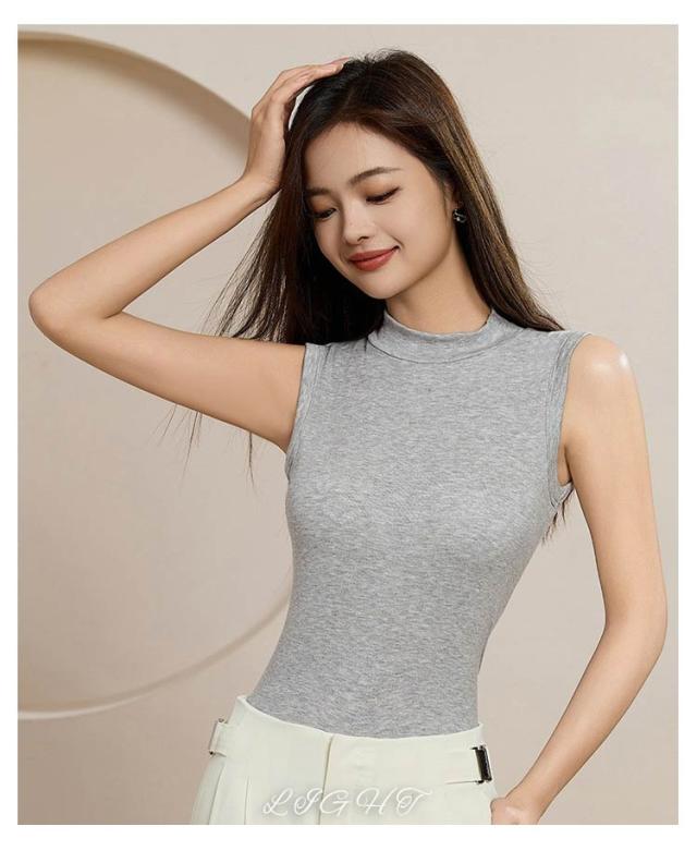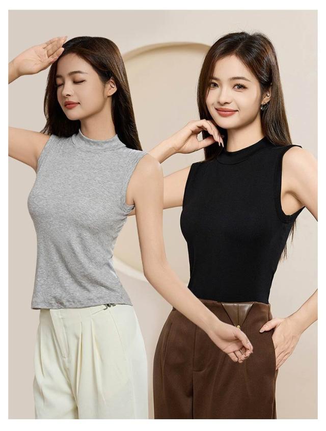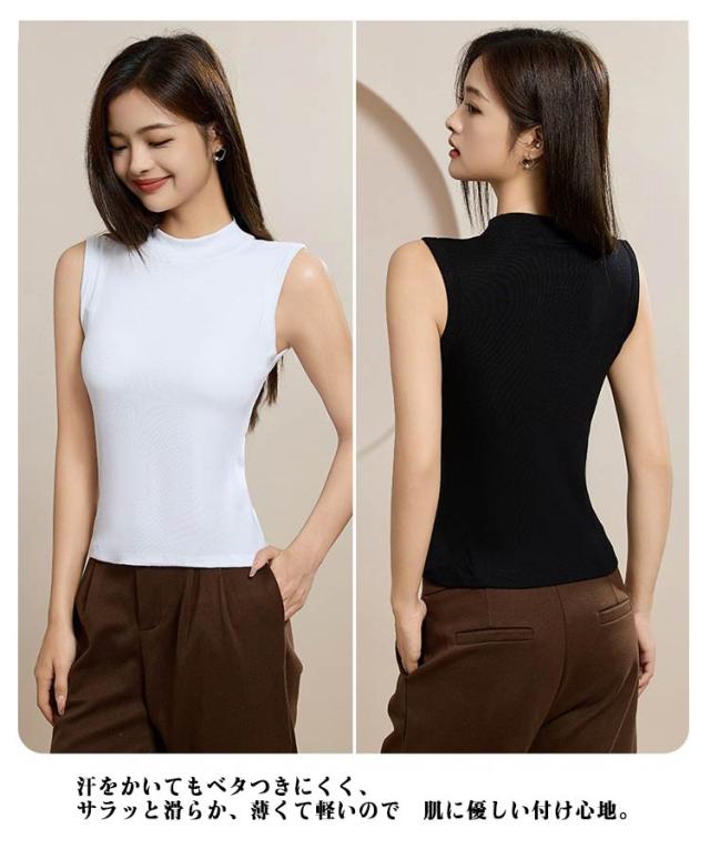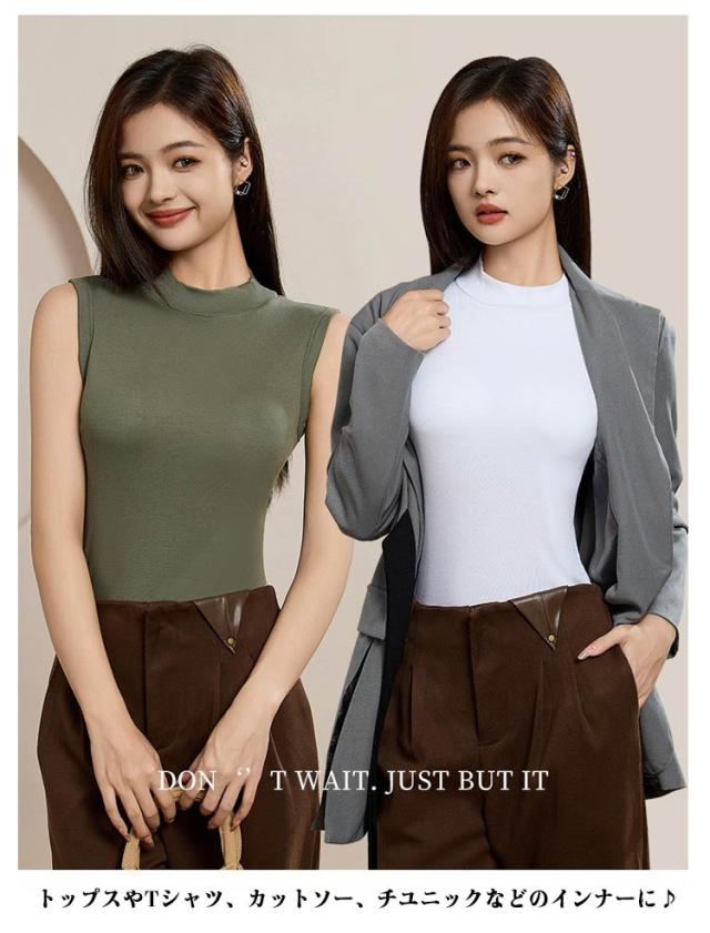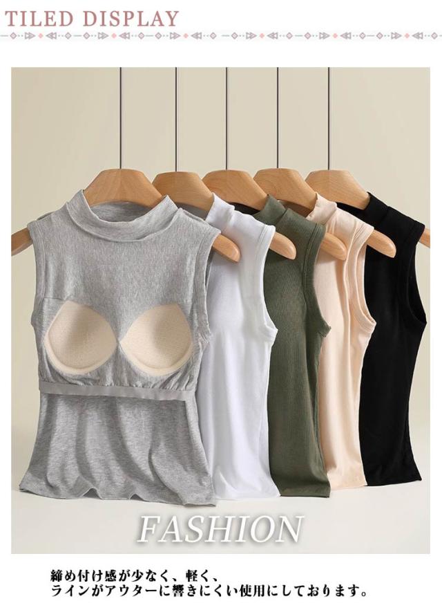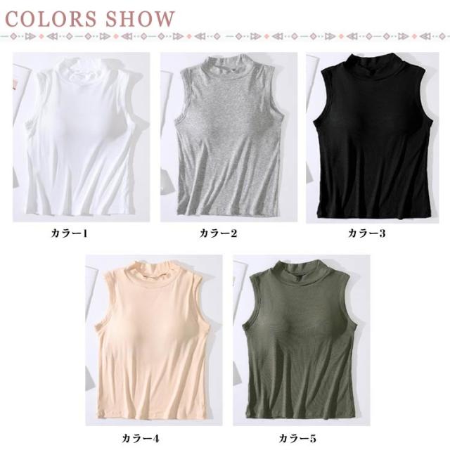 カットソー フェミニン タンクトップ モックネック ノースリーブ モックネック Tシャツ カップ付き 薄手 カップ付きインナー トップス ハイネック おしゃれ M L XL
